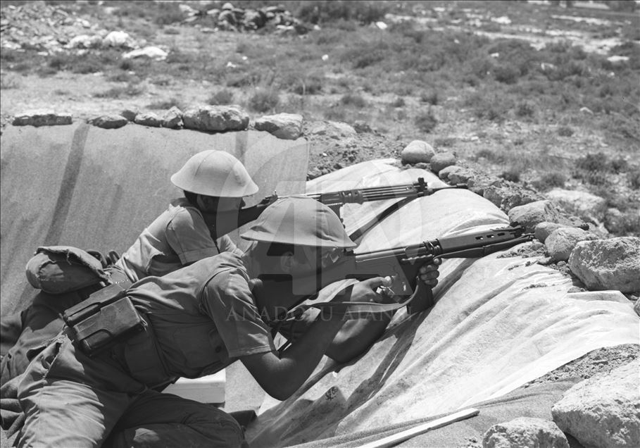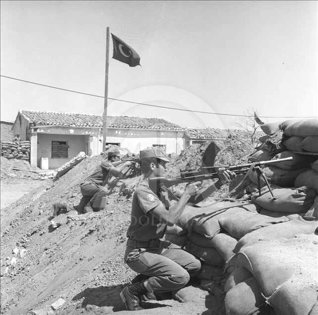 Kıbrıs Adası'nda Türklerin uğradığı baskı ve zulmü ortadan kaldırmak amacıyla Türk Silahlı Kuvvetlerince (TSK) gerçekleştirilen Kıbrıs Barış Harekatı'nın üzerinden 45 yıl geçti. "Ayşe tatile çıksın" parolasıyla başlatılan harekat, adada akan kanı durdurdu. 20 Ağustos 1974'de Lapta Harekatı. (Arşiv) ( BYEGM - Anadolu Ajansı )