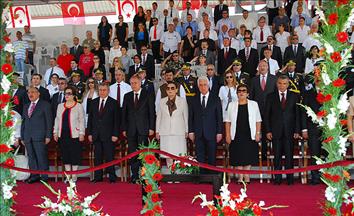Girne Kapısı'ndaki Atatürk Anıtı'nda düzenlenen törene, KKTC Cumhurbaşkanı Akıncı, Cumhurbaşkanı Yardımcısı Oktay, KKTC Cumhuriyet Meclisi Başkanı Teberrüken Uluçay, KKTC Başbakanı Ersin Tatar, Ulaştırma ve Altyapı Bakanı Mehmet Cahit Turhan, TBMM Başkanvekilleri Süreyya Sadi Bilgiç, Celal Adan, Kültür ve Turizm Bakan Yardımcısı Serdar Çam, AK Parti Ankara Milletvekili Tuğrul Türkeş, AK Parti Konya Milletvekili Orhan Erdem, MHP Kütahya Milletvekili Ahmet Erbaş, BBP Genel Başkanı Mustafa Destici, Türkiye'nin Lefkoşa Büyükelçisi Ali Murat Başçeri ve askeri erkan katıldı.