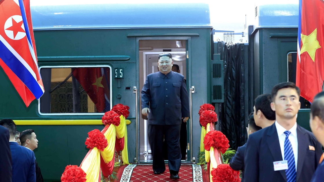 Çin-Vietnam sınırına kadar trenle yolculuk eden, buradan kara yoluyla başkente ulaşan Kim'e, bir koruma ordusunun eşlik ettiği görüldü.