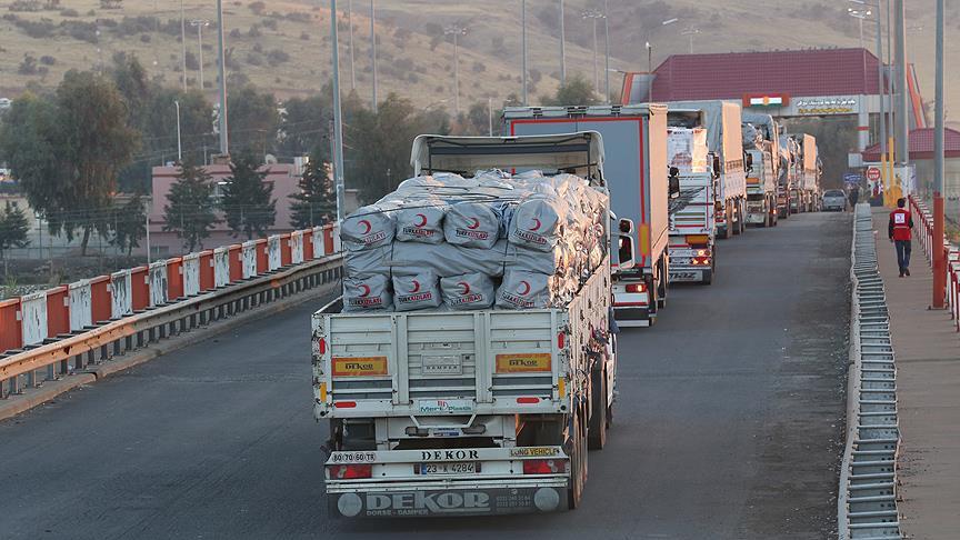 Ekipler ve yardımların bulunduğu tırlar Habur Sınır Kapısı'ndan geçerek Irak'a gitti.