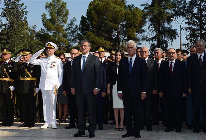Cumhurbaşkanı Abdullah Gül ve KKTC Cumhurbaşkanı Derviş Eroğlu'nun, anıta çelenk bırakmasıyla başlayan törende, KKTC Meclis Başkanı Sibel Siber, KKTC Başbakanı Özkan Yorgancıoğlu ve diğer bazı ilgililer de anıta çelenk koydu.