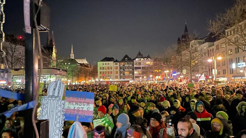 Neumarkt meydanında toplanan göstericiler ellerinde dövizler taşıyarak Deutzer Köprüsü'nden Ren Nehri'nin diğer yakasına doğru yürüdü.