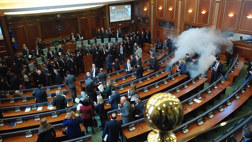 Öte yandan, Kosova Polisi de bugünkü genel kurulda salona gaz bombası attığı gerekçesiyle muhalefetteki Kosova'nın Geleceği İçin İttifak Milletvekili Pal Lekaj'ı gözaltına aldı.