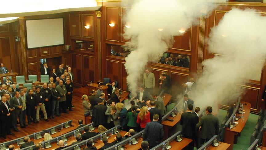 Muhalefet partili milletvekilleri önce Kosova Meclisi Başkanı Kadri Veseli'nin ofisi önüne, ardından iki kez meclis oturumu sırasında göz yaşartıcı gaz atarak, iktidar ortağı partilerin desteklediği yasa tasarılarının görüşülmesini protesto etti.
