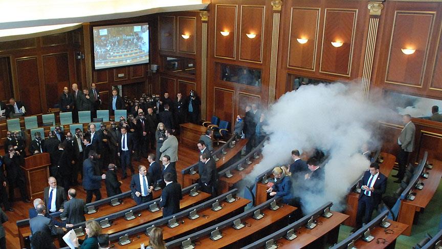 Kosova ve Sırbistan arasında AB'nin ara buluculuğundaki müzakerelerde, 25 Ağustos'ta üzerinde uzlaşılan ve Kosova'da Sırp Belediyeler Birliği kurulması ile Karadağ-Kosova sınırının revize edilmesini öngören anlaşmaya karşı çıkan muhalefet, zaman zaman gaz bombası atarak meclis genel kurulunda iki aydır eylem yapıyor.