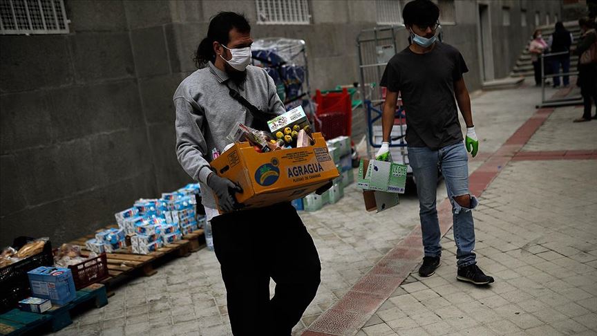 Ülkede olağanüstü halin başladığı 14 Mart'tan bu yana sadece Madrid'de gıda yardımı alanların sayısının 100 bini geçtiği bildirildi.