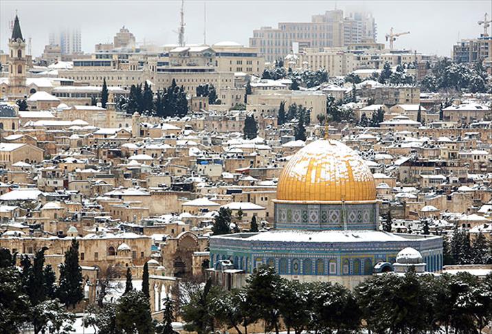 Yaklaşık bir saat süren kar eski şehrin içinde güzel görüntülere yol açarken, Harem-i Şerif içindeki Kubbetül Sahra’da manzaralık görüntüler ortaya çıktı.
