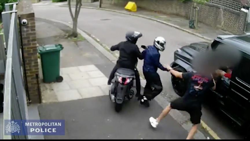 Londra polisinin Twitter hesabından yayınlanan görüntülerde, motosikletli iki kişinin Mesut Özil'in aracına yaklaştığı, bunlardan birinin Kolasinac'a bıçak çektiği görülüyor.