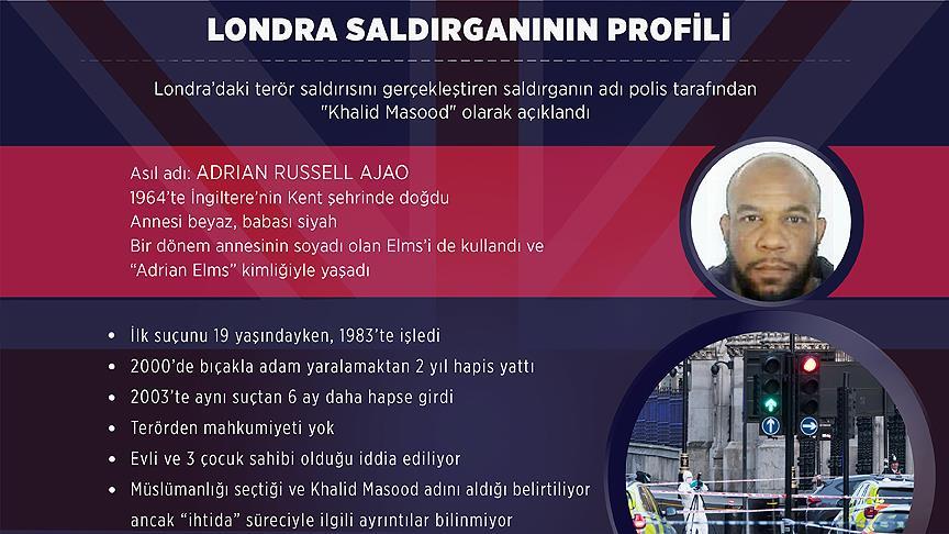 İngiliz Parlamentosunun yanı başındaki, simge değeri büyük Westminster Köprüsü'nde aracını yayaların üzerine süren, ardından parlamentonun bahçesinde bir polisi öldüren saldırganın adı dün polis tarafından "Khalid Masood" olarak açıklandı. Polis kısa bir süre sonra da Masood’un gerçek adının Adrian Russell Ajao olduğunu duyurdu.
