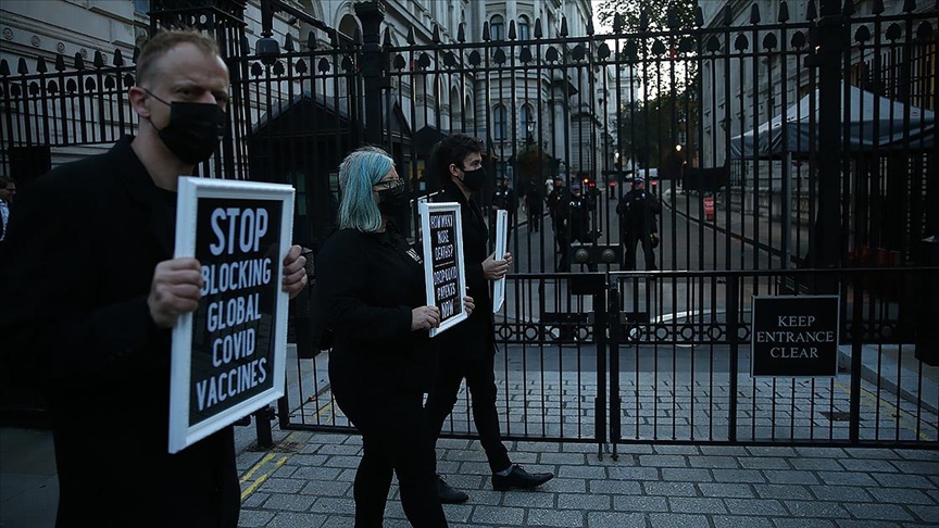 "Kovid 19: Utanç Günü" adlı gösteride, İngiliz hükümetinden aşı patentleri konusundaki tavrını değiştirmesi istendi. Sembolik cenaze töreninde siyah giyen göstericiler, "Daha ne kadar ölüm" ve "Aşı stoklamaya son verin" yazılı dövizler de taşıdı.