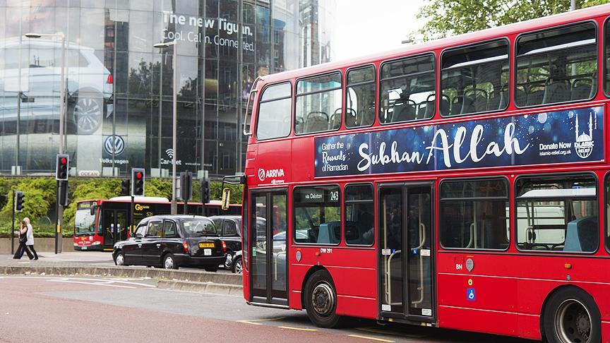 İngiltere'nin başkenti Londra'nın simgelerinden kırmızı, iki katlı otobüslerin üzerine "Sübhanallah" yazılı ilanlar yerleştirildi.