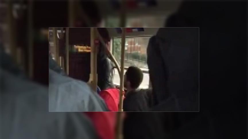 İngiltere'nin başkenti Londra'da hizmet veren belediye otobüsünde Türk vatandaşına yapılan ırkçı ve İslamofobik saldırı cep telefonuyla görüntülendi.