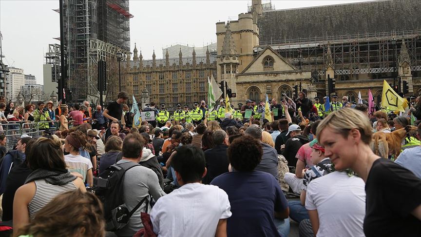 Çevreci kampanya grubu Extinction Rebellion'ın Londra'nın merkezi yerlerinde gerçekleştirdiği işgal eylemlerinde gözaltına alınanların sayısı bini geçerken, grup elinde kalan son alan Marble Arch'tan Parlamento Meydanı'na yürüdü.