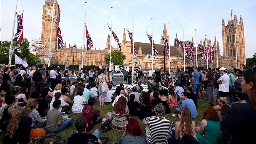 Londra'nın batısında Latimer Road semtinde bulunan 24 katlı Glenfell Tower binasında çıkan yangında hayatını kaybedenler için İngiliz parlamentosu karşısındaki parlamento meydanında anma buluşması düzenlendi.