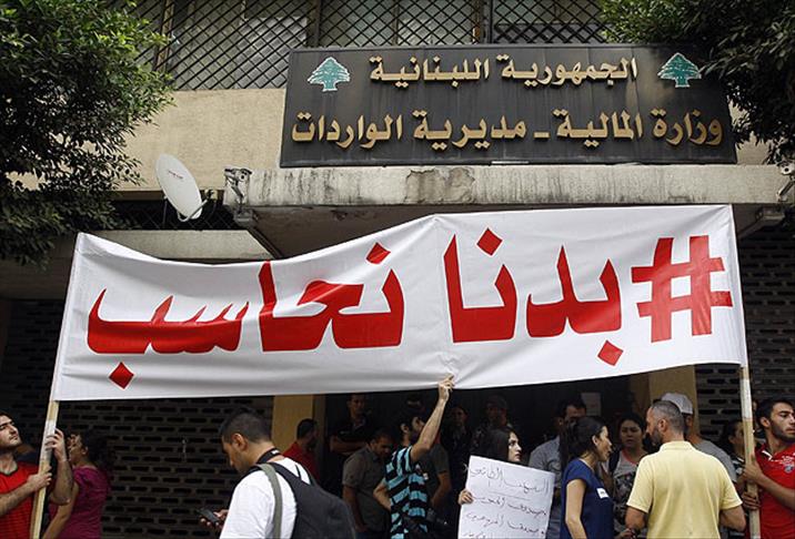 Beyrut'un merkezindeki Maliye Bakanlığı'na bağlı Gelirler Müdürlüğü önünde gösteri düzenleyen çeşitli sivil toplum kuruluşlarına bağlı onlarca kişi, aralarında Maliye Bakanlığı'nın da bulunduğu kurumlardaki yolsuzluğu protesto ederek, görev süreleri 2013'te sona ermesine rağmen 2017'ye kadar 2 kez görev sürelerini uzatan milletvekillerinin maaşlarının ödenmemesini talep etti.