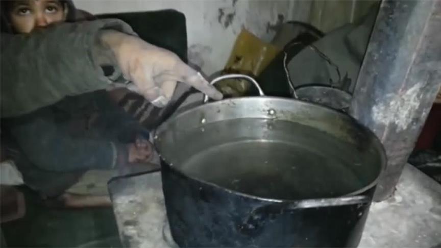 Madaya'da yaşayan ve AA kamerasına güvenlik nedeniyle yüzünü gizleyerek konuşan bir kadın, "su, tuz ve kemik" kaynatıp içerek karınlarını doyurduklarını, eşinin sürekli tuzlu su içmek zorunda kaldığı için ayaklarının şiştiğini ve görme yetisini kaybettiği söyledi.