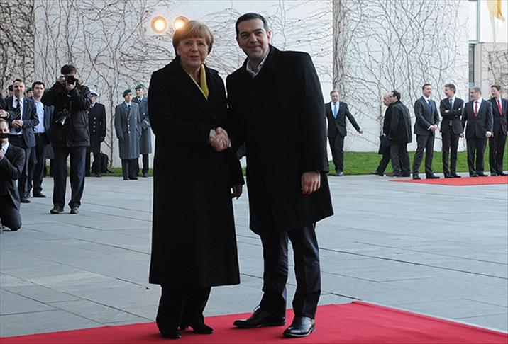 Merkel, ilk kez Almanya’ya resmi ziyarette bulunan Çipras'ı Başbakanlıkta askeri törenle karşıladı.