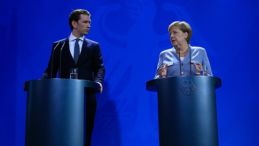 Almanya Başbakanı Angela Merkel, başkent Berlin'de AB dönem başkanlığını yürüten Avusturya Başbakanı Sebastian Kurz ile görüşme öncesinde ortak basın toplantısı düzenlendi.