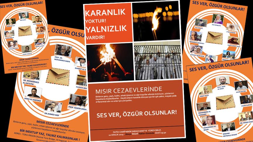 Açıklamada, aralarında kadınların ve öğrencilerin de bulunduğu mahkumların zaman zaman açlık grevi yaparak seslerini duyurmaya çalıştıkları aktarılarak, "Bazen sözde yargılamalarla alınan idam kararlarının infazı ile bazen de kötü koşullar sebebiyle hayatlarını kaybetmektedirler. Yakınlarının ve avukatlarının görüşmelerine izin verilmemektedir. Mısır hapishanelerindeki mazlumların durumlarına dair farkındalık oluşturmak, işkence, kötü koşullar veya infazla ölümlerine engel olabilmek ve özgürlüklerine kavuşmaları için 10 Aralık İnsan Hakları Günü vesilesiyle bazı etkinlikler yapılacaktır." denildi.
