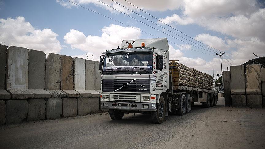 Gazze'ye bin ton çimento yüklü 19 aracın girdiğini belirten kaynaklar, sınır kapısının açık kalacağı süre boyunca 5 bin ton çimentonun içeri girişinin beklendiğini kaydetti.