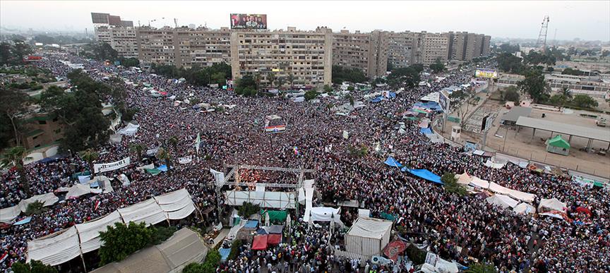 Ülkenin çeşitli kentlerinden gelerek Rabiatul Adeviyye'de toplanan göstericilerin sayısında sabah saatlerinden itibaren büyük artış yaşandı.