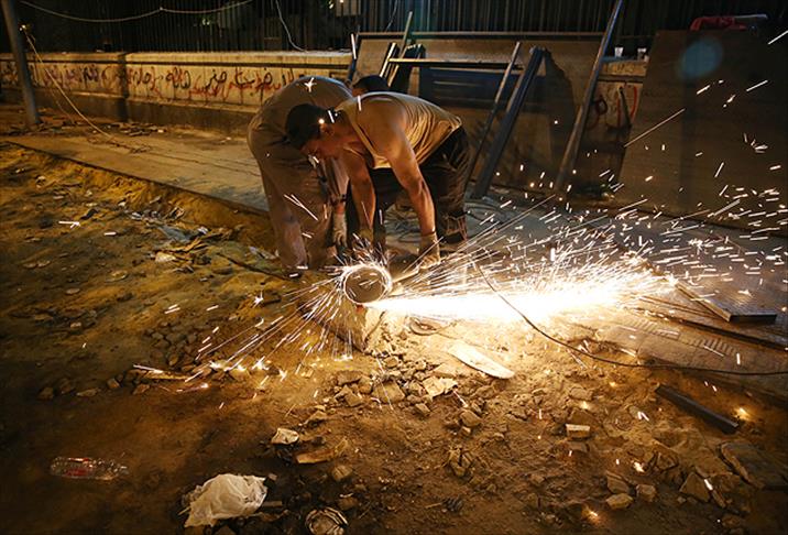 Nahda Meydanı'na olabilecek herhangi bir saldırı karşısında kendilerini savunmak için darbe karşıtları demir kalkanlar hazırlıyor.