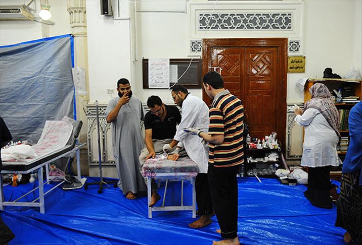 Mısır'da ordunun müdahalesinin ardından başkent Kahire'de, demokrasi yanlılarının gösterilerini sürdürdüğü Rabiatul Adaviyye Meydanı'nda kurulan sahra hastanesi kıt imkanlarla şifa dağıtmaya çalışıyor.
