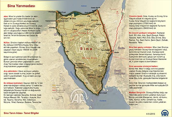 Bölgeyi iyi bilen uzmanların Hazreti Musa'nın çıktığı 'Tur Dağı' nedeniyle özellikle İsrail açısından 'stratejik' önemine dikkati çektiği Sina yarımadası, Asya'dan Afrika'ya karadan geçişin önemli merkezlerinden biri olarak görülüyor. Kızıldeniz ile Akdeniz arasında Süveyş Kanalını da yanında barındırması bu kara parçasının önemini bir kat daha artırıyor. Sina Yarımadası'nın İsrail'le 265 km'lik sınır boyunun yanında Gazze'yle olan sınır uzunluğu da 14 kilometre'ye ulaşıyor.