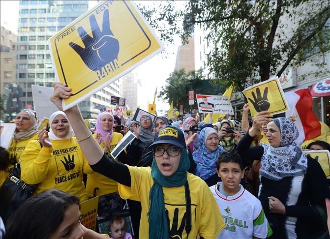ABD'de yaşayan Mısırlılar, geçen haftalarda olduğu gibi Birleşmiş Milletler Genel Merkezi yakınındaki Mısır Büyükelçiliği önünde toplanarak ülkelerinde darbe karşıtlarına uygulanan katliamı protesto etti.