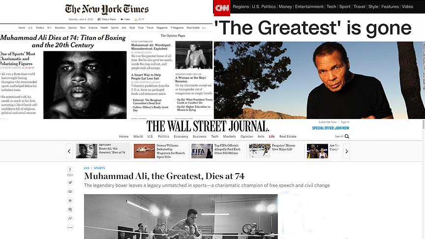 "Muhammed Ali Dünyayı Salladı" başlığını kullanan Wall Street Journal gazetesi de "Efsanevi boksör, kendine 'en büyük' dedi. Bu, cafcaflı övünme ve sabit bir gerçekti." ifadelerini kullandı.