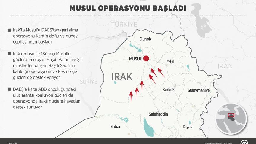 Irak'ta Musul'u terör örgütü DAEŞ'ten kurtarma operasyonunun birinci aşaması kentin güney ve doğu cephelerinden başladı.