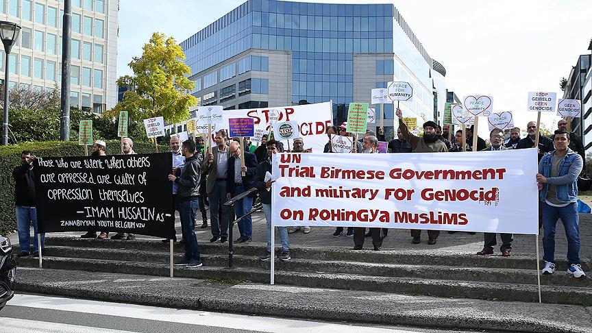 Myanmar ordusunun Arakan'daki Müslümanlara yönelik katliamı, Brüksel’de protesto edildi.