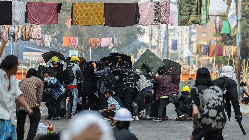 Myanmarlılar, 6 Şubat'ta demokrasiye dönüş talebiyle gösterilere başlamıştı. Güvenlik güçlerinin silahlı müdahalelerinde yaklaşık 90 gösterici hayatını kaybetti, 1500'ün üzerinde kişinin tutukluluğu sürüyor.