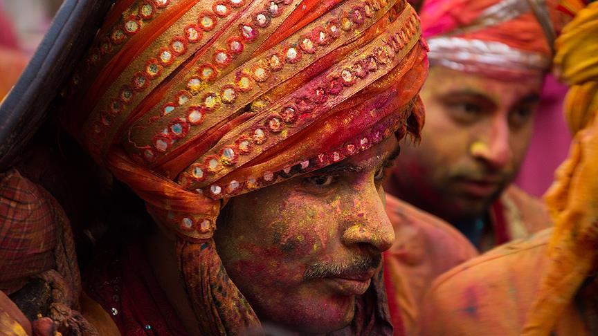 Hindistan'da renklerin festivali olarak bilenen "Holi Festivali" Mathura kentinde bulunan Nandgaon köyündeki Nandbaba Tapınağı'na gelen binlerce Hindu tarafından kutlandı.