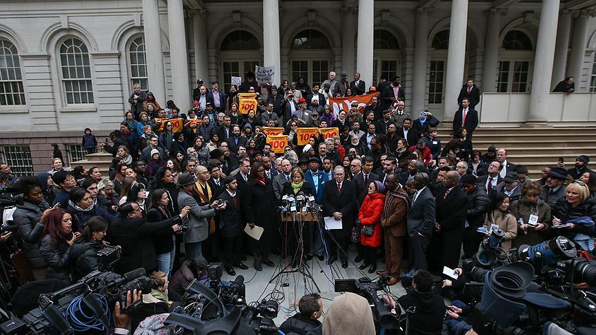New York Meclis Başkanı Melissa Mark-Viverito'un önderliğinde Belediye Başkanlığı binası girişindeki basamaklarda toplanan New York Meclis Üyeleri, çok sayıda farklı dini inanıştan toplum lideri, sivil toplum aktivisitleri Trump'ın ırkçı söylemini sert bir şekilde kınadılar.