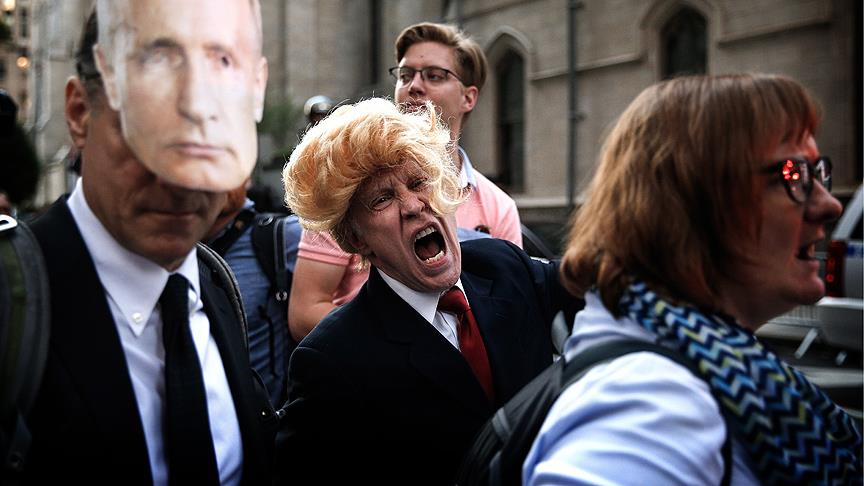 Trump karşıtı dövizler taşıyan göstericiler, "Tüyler ürperten tweetler atan birini değil, lider istiyoruz", "Yalancı, hırsız, avcı" diye slogan attı.