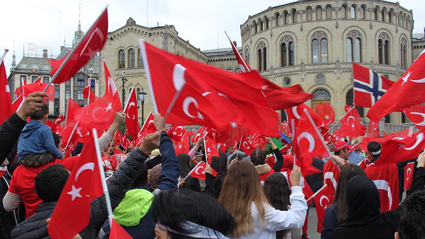 Norveç'te yaşayan Türkler, başkent Oslo'da düzenledikleri yürüyüşle hem darbe girişimini protesto etti hem de terör örgütlerine tepki gösterdi.