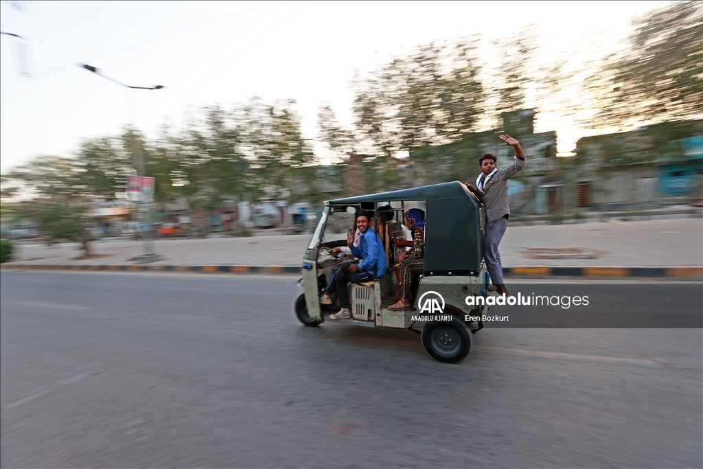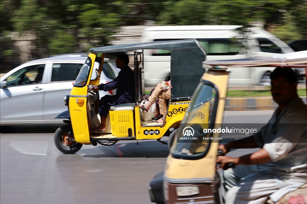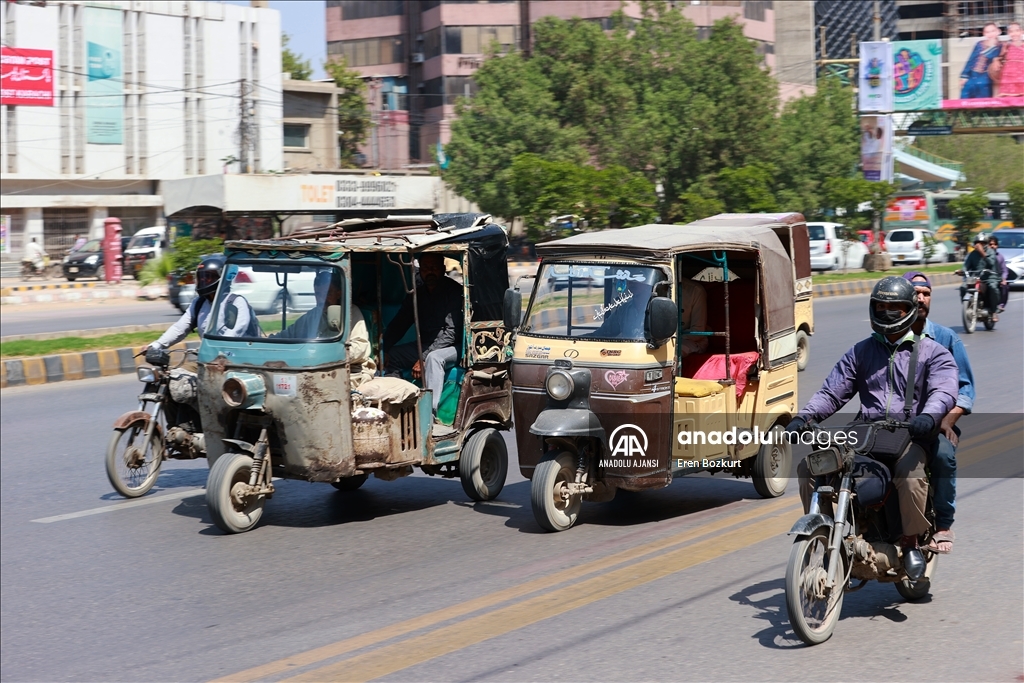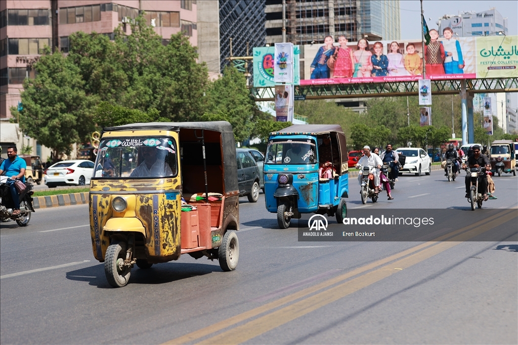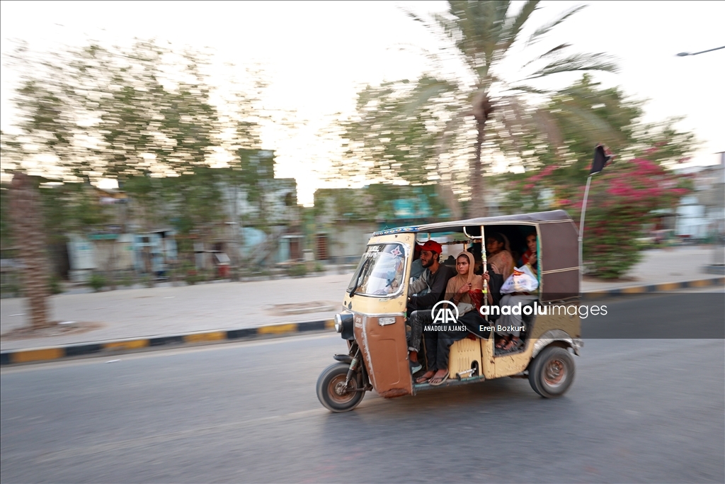 Trafiğin tam bir keşmekeş olduğu Karaçi şehrinde, ulaşımda, arkasında yolcu koltuğu da bulunan ve 5 kişi taşıma kapasiteli rikşalar tercih ediliyor.