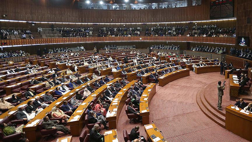 Pakistan parlamentosunun alt kanadı Ulusal Mecliste (NA) 342 milletvekilinin 329'unun katıldığı ilk oturumda yemin töreni yapıldı.
