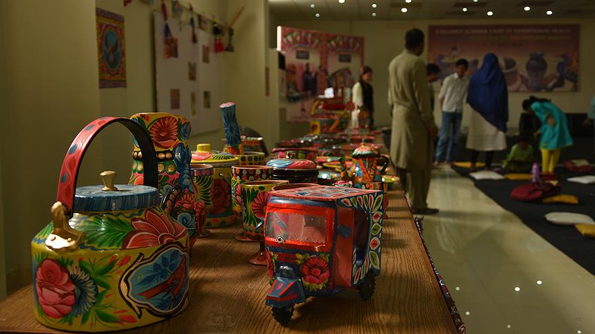 Pakistan'ın başkenti İslamabad'daki Lok Virsa Ulusal Halk ve Geleneksel Miras Enstitüsü'nde açılan yaz okulunda kamyon boyama ustası ve ressamlar gözetiminde 25 çocuk eğitim alıyor.