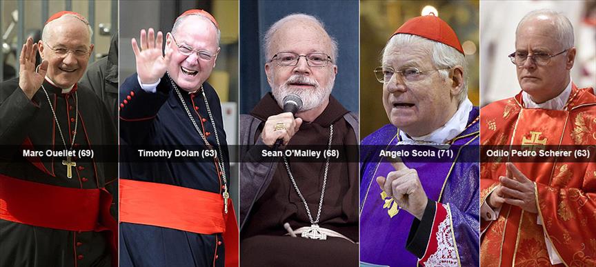 İtalyan Kardinal ve aynı zamanda Milano Başpiskoposu olan Angelo Scola (71), Kanadalı Kardinal ve aynı zamanda Piskoposluk Kongregrasyonu Başkanı Marc Ouellet (69), Brezilyalı Kardinal ve Sao Paolo Başpiskoposu Odilo Pedro Scherer (63), Amerikalı Kardinal ve Boston Başpiskoposu Sean O'Malley (68) ve bir başka Amerikalı Kardinal New York Başpiskoposu Timothy Dolan (63).