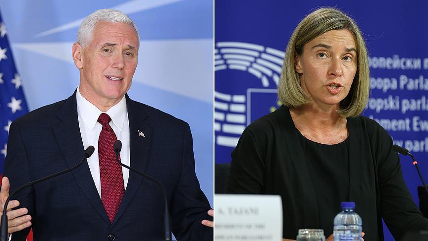 ABD Başkan Yardımcısı Mike Pence ile Avrupa Birliği (AB) Dış İlişkiler ve Güvenlik Politikası Yüksek Temsilcisi Federica Mogherini'nin telefonda görüşerek, İsviçre'de devam eden Kıbrıs müzakerelerinden olumlu netice çıkması yönündeki ümitlerini dile getirdikleri bildirildi.