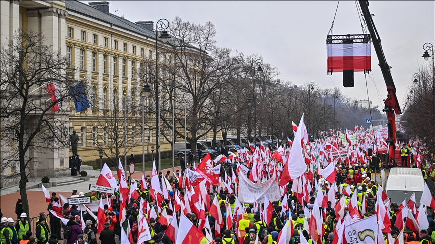 Protesto kapsamında, traktörleriyle başkente giden otoyolları kapatan Polonyalı çiftçiler, polis müdahalesine havai fişek ve sis bombası ile karşılık verdi.
