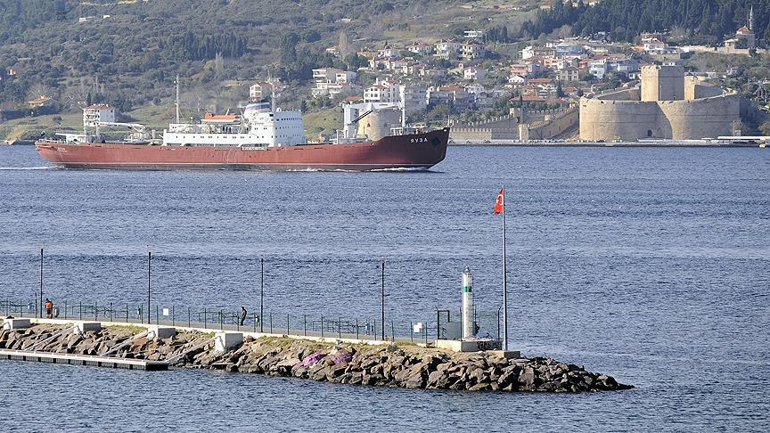 Rus Donanmasına ait bir gemi, Çanakkale Boğazı'ndan geçti.