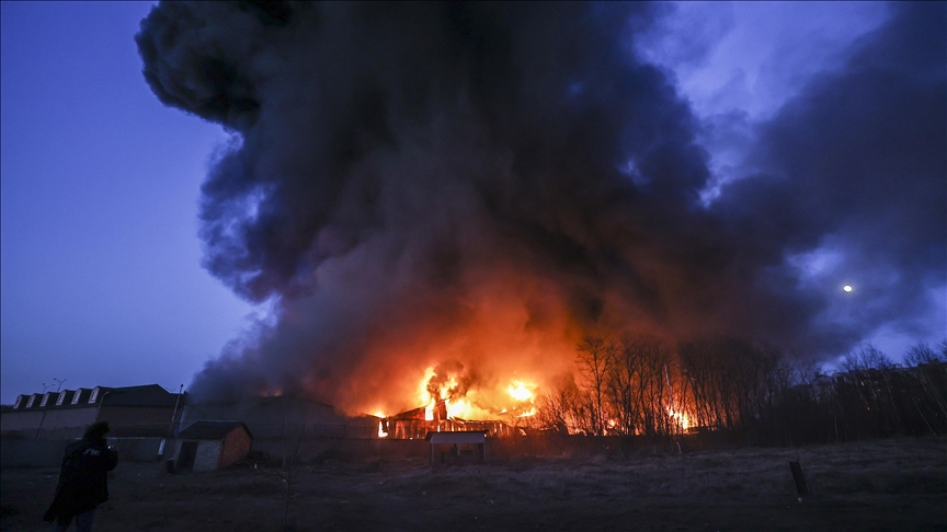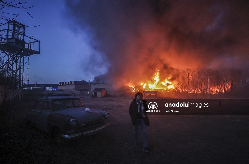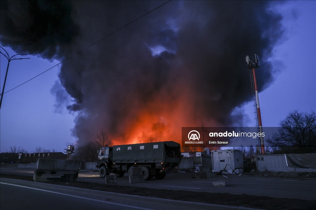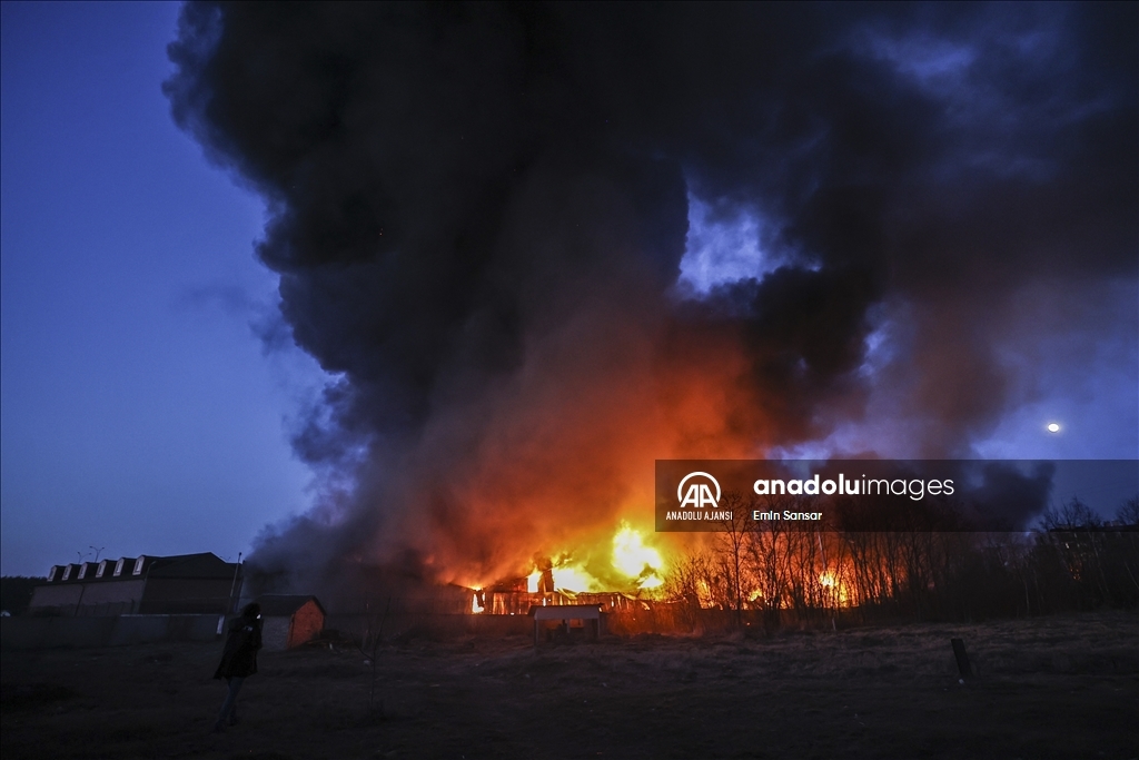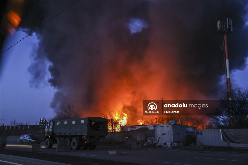 Ukrayna Acil Servisinden yapılan yazılı açıklamaya göre, Rus güçleri Sviatoshynskyi'de depoların olduğu bölgeye saldırı düzenledi.