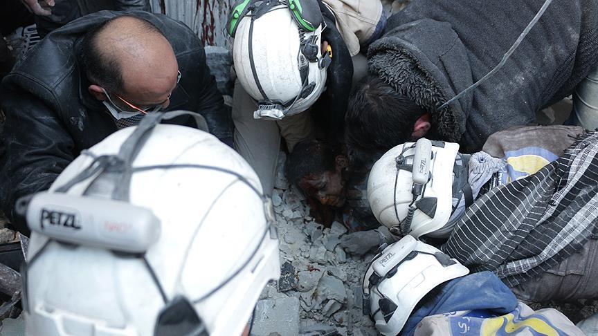 Sivil savunma ekiplerinin, enkaz altında ölü ve yaralının olup olmadığına dair çalışmalar yürüttüğünü belirten yetkililer, kentin kuzeyindeki beldelerin Rus uçaklarının yoğun bombardımanına maruz kaldığını dile getirdi.