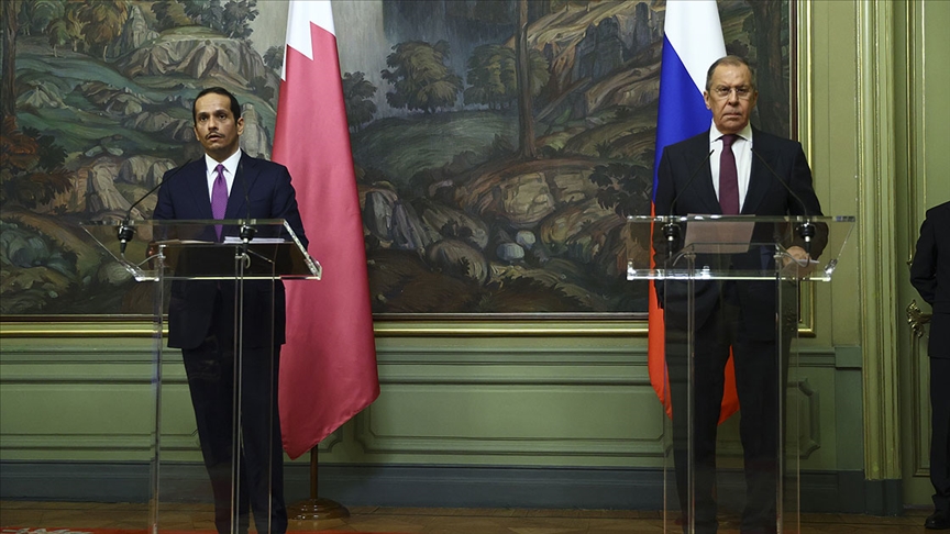 Lavrov ile Katar Dışişleri Bakanı Muhammed Bin Abdurrahman Al Sani, başkent Moskova'daki görüşmelerinin ardından basın toplantısı düzenledi.
