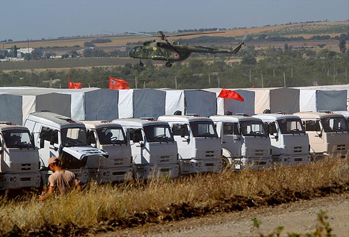 Ukrayna ordusunun ayrılıkçılara karşı terörle mücadele operasyonu yaptığı bölgeye Rusya'nın gönderdiği insani yardım konvoyunun Ukrayna sınırına doğru ilerlediği, iki ülke makamlarının araçların ilk bölümünün incelenmesi konusunda anlaştığı bildirildi.