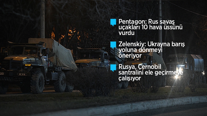 Pentagon, dün gece 75 Rus savaş uçağının Ukrayna’ya girdiğini, Rus ordusunun Ukrayna’ya 100 civarında füze fırlattığını ve 10 hava üssünü vurduğunu açıkladı.