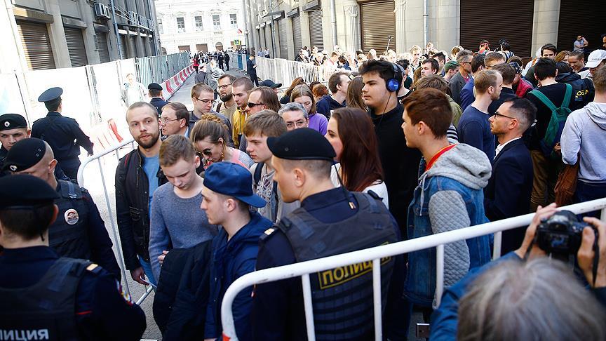Başkent Moskova'da ''Kitai Gorad'' semtinde Putin karşıtı gösteri düzenlemek üzere toplanan kalabalığa polis gösteri izni olmadığı gerekçesiyle müsade etmedi.